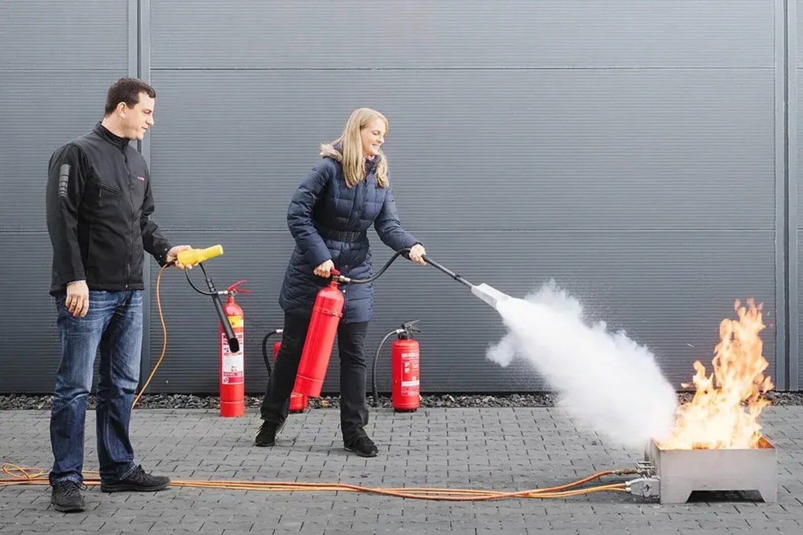 Apprentissage de l’utilisation des moyens de secours avec des extincteurs de formation